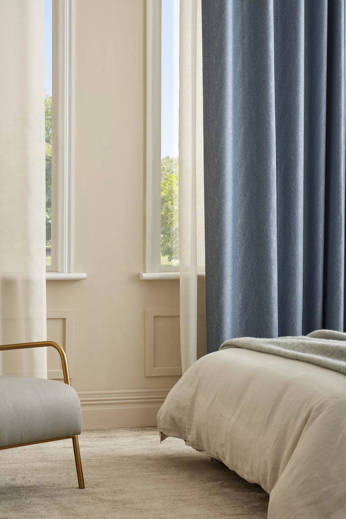 Self-weighted and available as a continuous, 320cm wide solution, ANTIGUA is ideal for layering with heavier curtains for added insulation, controlling light and privacy or to elegantly section a space. Designed to create an airy feel with a relaxed ambiance where its self-weighted hem will add balance for puddling or floating.